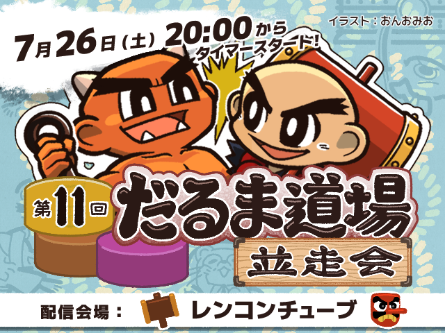 🔴並走会ルール ・だるま道場のソフトを持っている ・ゲーム配信ができる ・坊主/巫女 どちらでもOK ・ゲーム中はリセットおよびパスワード入力によるステージ変更NG (コンティニューOK) ・足切りタイムは1時間半くらいを想定 (でも時間内にクリアできなくてもOK)